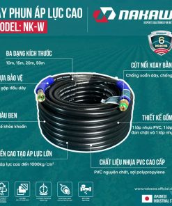 Dây phun áp lực cao Nakawa NK-W có các kích thước: 10m, 15m, 20m và 50m để khách hàng thoải mái lựa chọn tuỳ vào nhu cầu sử dụng.