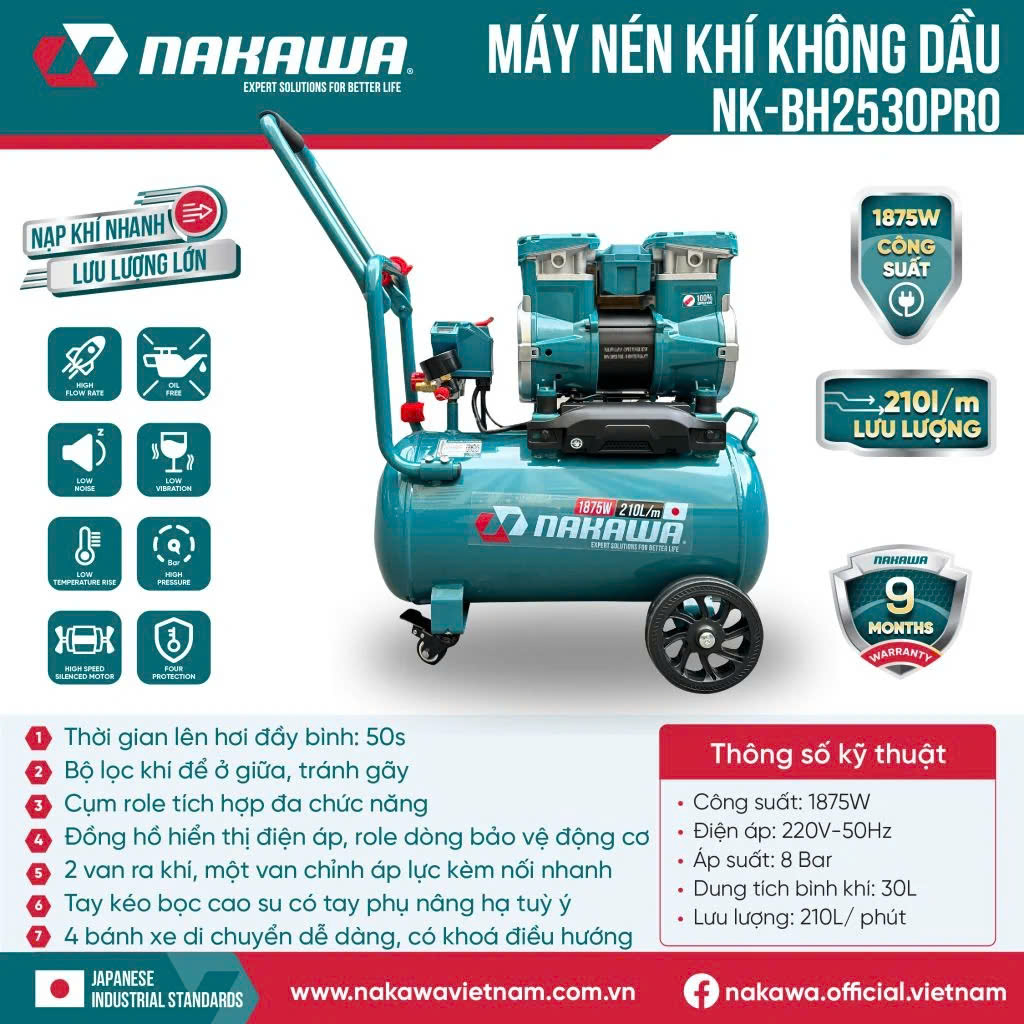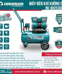 Máy Nén Khí Không Dầu, Tốc Nhanh, Siêu Êm Nakawa NK-BH2530PRO – 30 Lít
